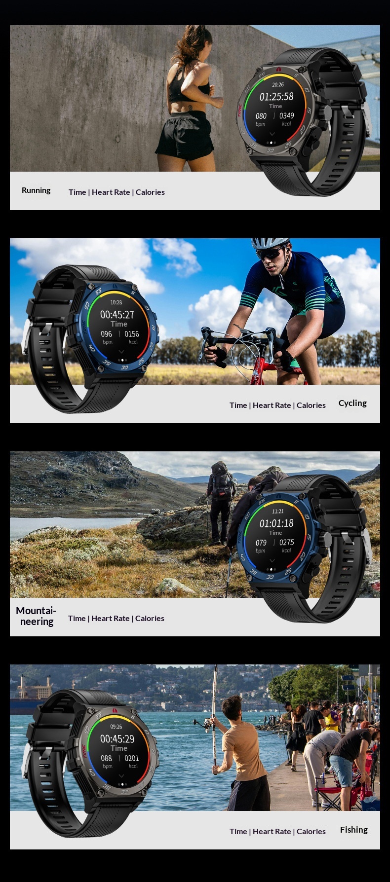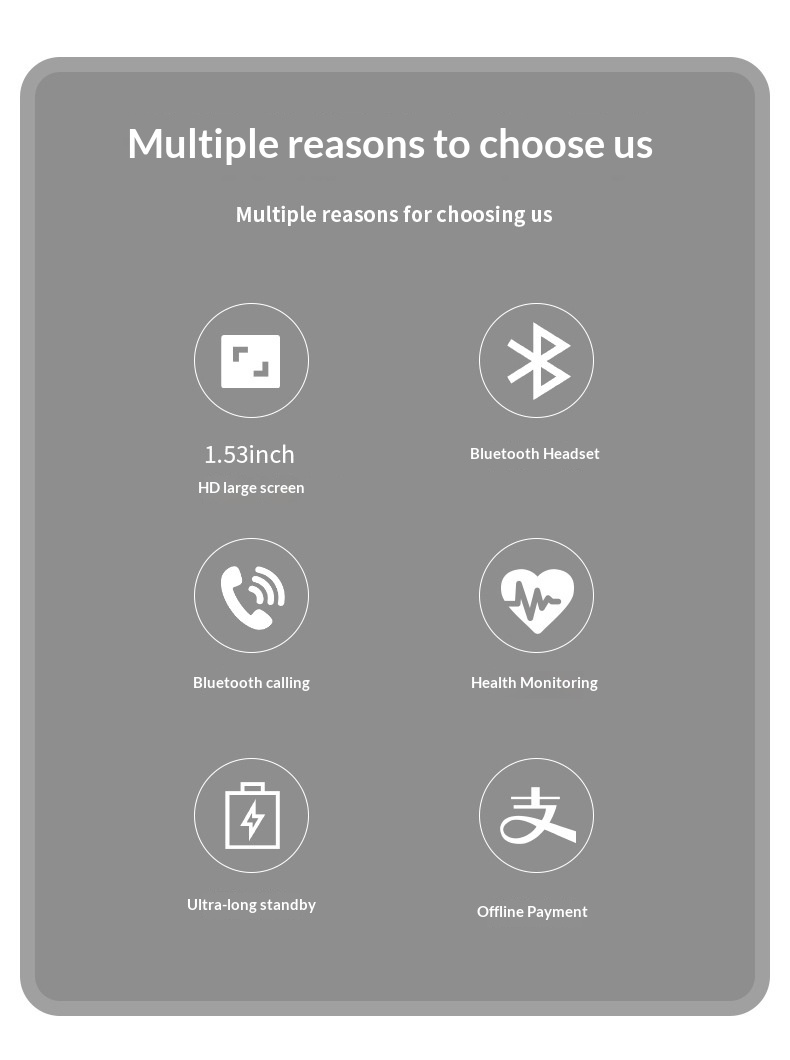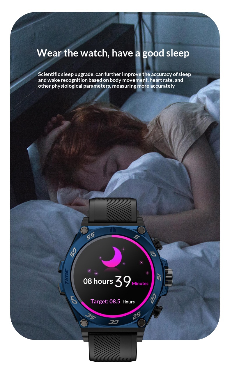Features: Waterproof, pedometer, heart rate monitoring, Bluetooth calls, smart notifications, sleep tracking