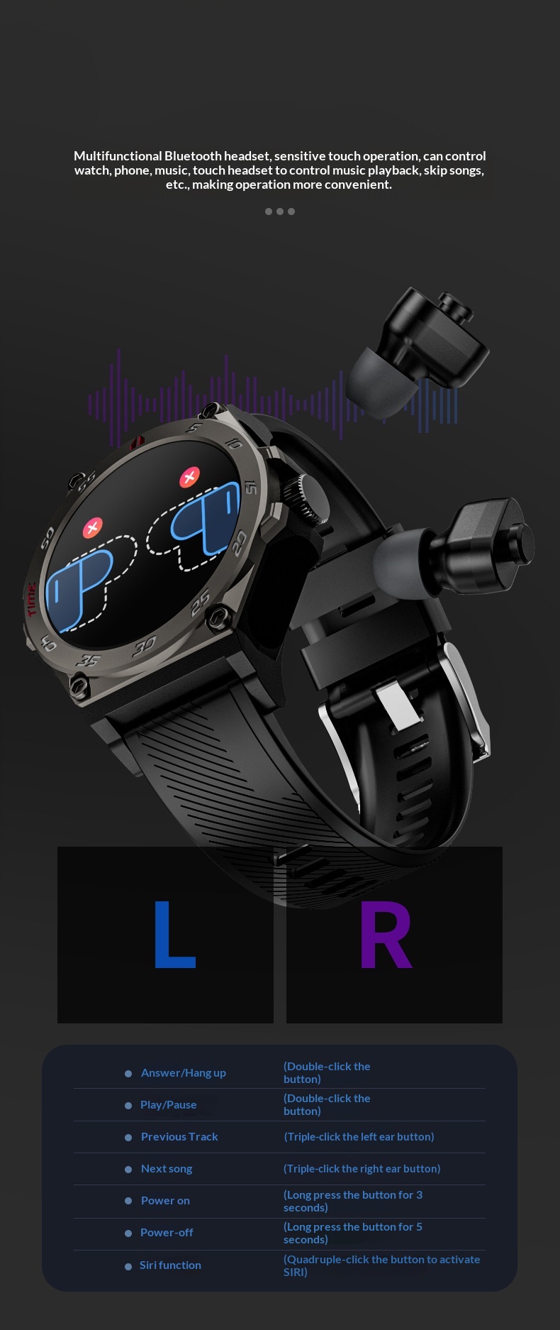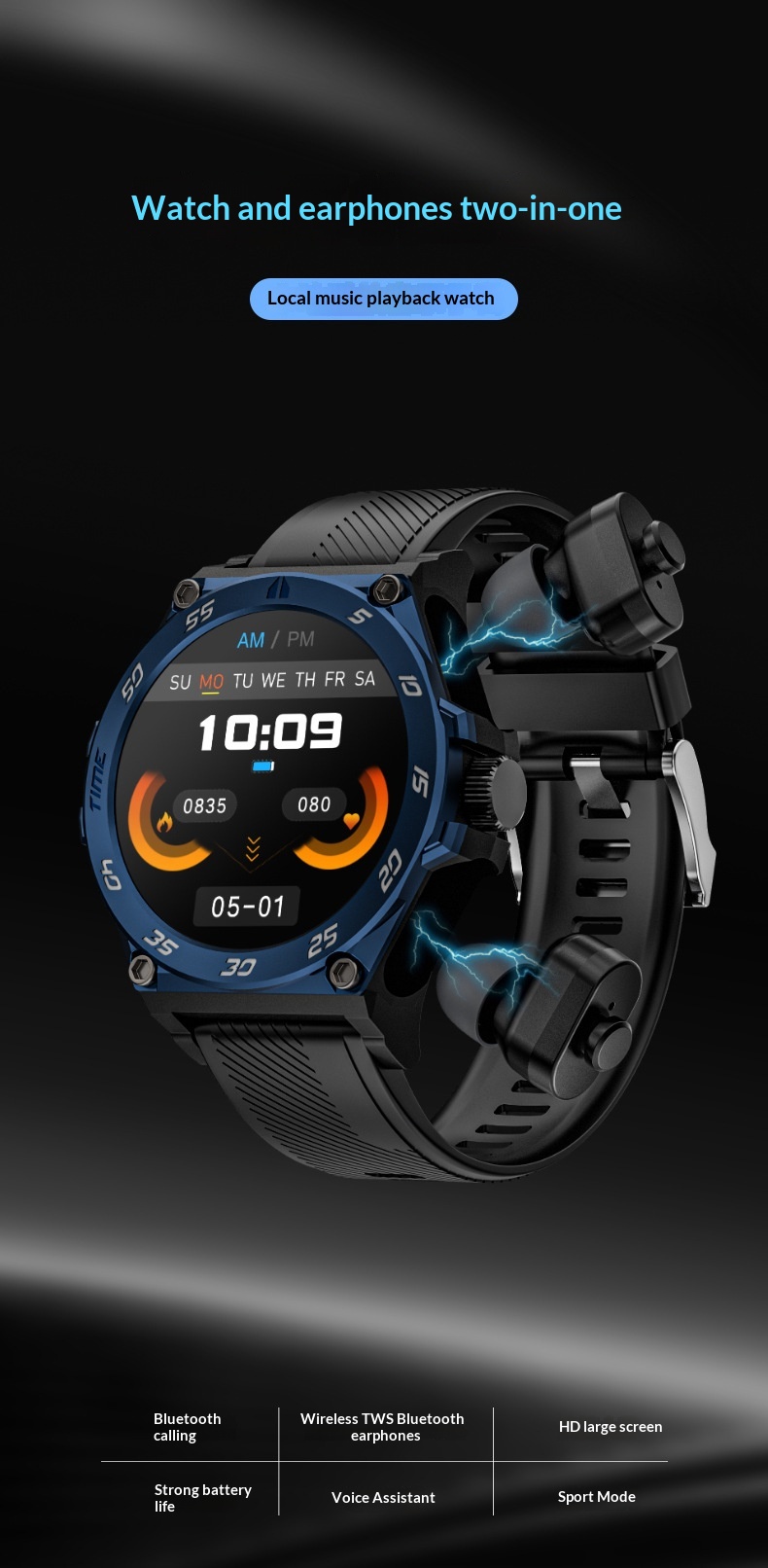 Smartwatch With Bluetooth Calling And TWS Earbuds In One